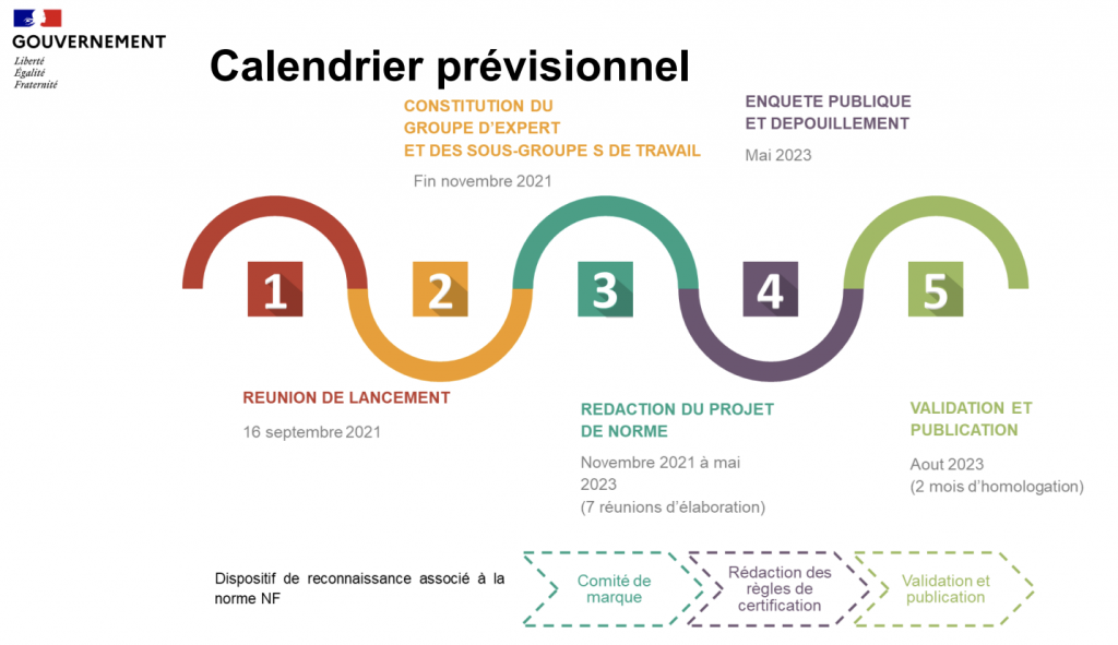 Avec pour finalité, la publication de l’arrêté à la fin du 1er trimestre 2023, pour une application au 2e trimestre 2023.